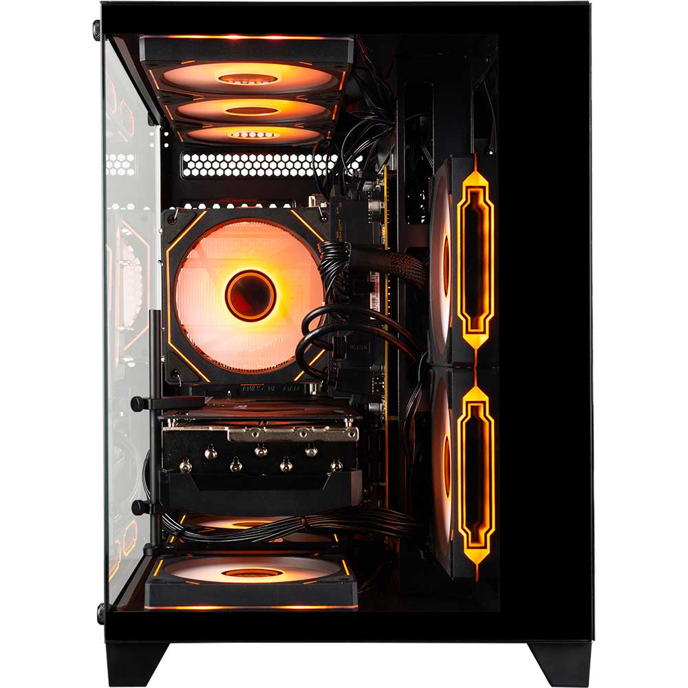 The immersive and visually stunning Panorama XL gaming desktop PC brings every detail to life. Additionally, the 10 ARGB fans cast a dynamic and customizable light show with views of the powerful internal components inside. Encased in glass similarly to Hyte Y60 and Lian Li O11, the Panorama XL gaming PC is a stunning desktop, configurable up to a Intel Core Ultra 9 285K or Ryzen 9 9950X3D processor with AMD Radeon RX 9070 XT or NVidia GeForce RTX RTX 5080 or RTX 5090 graphics. Overall, the Panorama XL prebuilt gaming PC with its superior cooling efficiency is the best gaming computer.